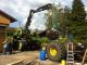 Zur Zeit steht der Trac wieder auf 34" Rädern und ist mit dem Kran auf dem Rücken unterwegs.