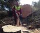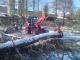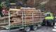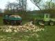 Die dicken Stämme müssen noch einmal aufgespalten werden damit sie durch den Hacker passen.
