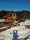 was will man mehr, Schnee, Rückewagen voll mit Fixlängen und der heilige Schein überm MB Trac