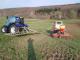Meine Nachsaat erledige ich, allerdings ohne Wildschweinschäden so: In der Fronthydraulik eine Wiesenschleppe, darauf einen Streuer, der nach vorne gerichtet ist. Im Heck eine Sternwalze mit vorlaufenden Striegelzinkenreihe.