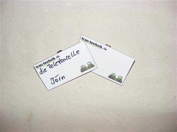 Ich nehm mein JDV Namensschild, hab sogar eins mit Häcksler drauf =)