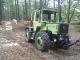 Hier nochmal unser Trac mit einem kleinen Fichtenstam hintendran: