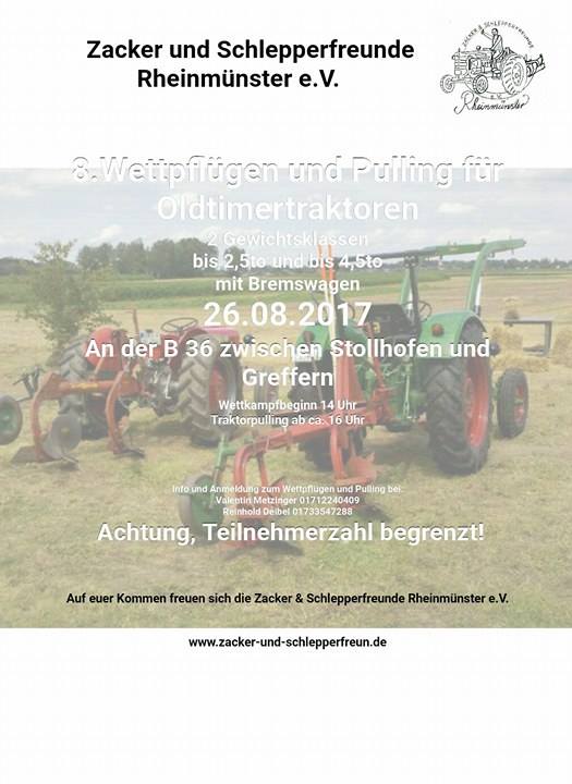 am Samstag den 26.8.2017 findet unser 8. Wettpflügen und Traktor Pulling bis 4,5To in 77836 Rheinmünster statt.