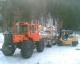 Die Zeit nutzen wir schon für andere Sachen,darum spannen wir den Trac vor einen 3-Achser Hänger und bringen unser Bauholz zum Sägewerk.